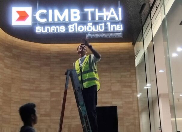 ผลงานนผลิตเเละติดตั้งป้ายไฟ ป้ายอะคิลิคธนาคาร CIMB